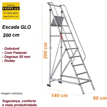 Escada com Plataforma Dobrável 2,00m Degrau Largo