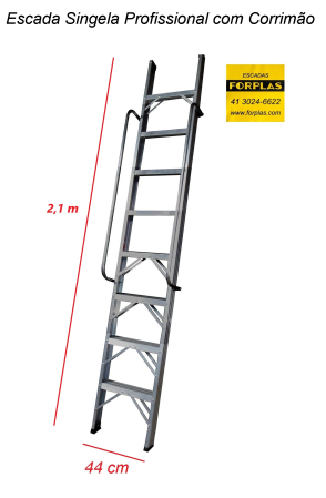 Escada Singela Paralela Profissional 2,10m com Corrimão