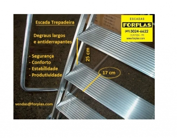 - Montantes, patamar e Degraus: liga de alumínio estrutural